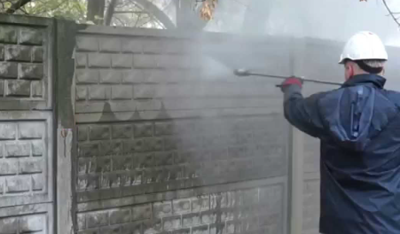 Proces mycia ciśnieniowego przebiega w kilku etapach. Pierwszym z nich jest wstępne czyszczenie płotu z pajęczyn, gałęzi, mchów. Następnym krokiem jest obróbka wodna (lub chemiczna). Wyrzucane z dyszy drobiny gorącej wody niczym pociski uderzają o powierzchnię betonu z dużą szybkością, usuwając wszelkie zanieczyszczenia.