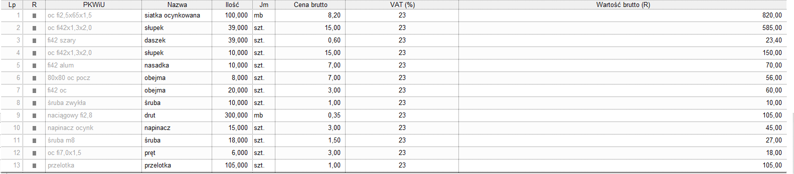 w tym siatki od 8,20 PLN/mb brutto